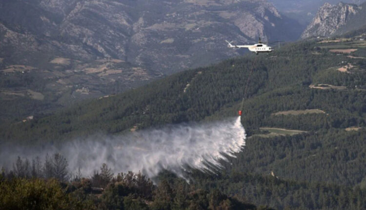 Die Teams bekämpfen die Flammen mit 2 Hubschraubern, 12 Wassertankern, 5 Wassertanks, 3 Arbeitsmaschinen und 70 Arbeitern.