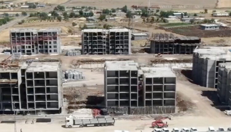 Für den Bau von 1122 Wohnhäusern in der 1. Phase im Bezirk Oğlaklı des Bezirks Merkez Bağlar wurde der Fundamentbeton von 38 Blöcken gegossen und der Bodenbeton von 1 Block begann zu steigen.