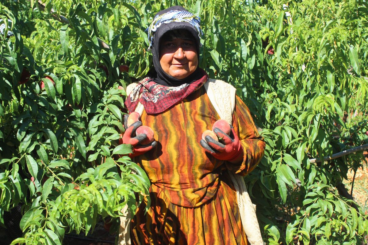 Wir arbeiten vor Ort. Wir kommen um 5 Uhr morgens hierher und fahren um 2 Uhr los. Wir ernten flache Pfirsiche und Pfirsiche. Sehr heißes und ermüdendes Personal ist ein großes Problem. Wir befüllen täglich 1.500 Kartons. Als Tageslohn erhalten wir 515 TL. Wegen der Hitze ist es schwieriger.