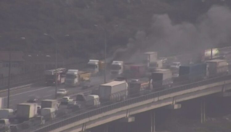 In Istanbul brannte ein Baggerlastwagen: Im Verkehr bildeten sich lange Schlangen