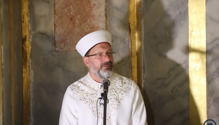 Ali Erbaş, Präsident für religiöse Angelegenheiten, nahm am Gebetsprogramm in der Hagia-Sophia-Moschee teil und richtete nach dem Nachtgebet eine Ansprache an die Gemeinde.