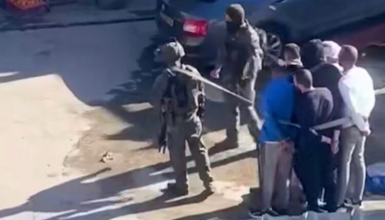 Die Momente, in denen israelische Soldaten sechs Palästinenser in Ostjerusalem festnahmen, indem sie sie mit Gürteln zusammenbanden, wurden mit der Kamera festgehalten.