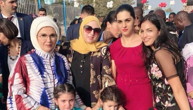 Emine Erdoğan, Ehefrau von Präsident Recep Tayyip Erdoğan, Zeina Katbay, ihre Geschwister Zahraa und Banin und ihre Mutter Muna Kutbay, mit der sie ein Foto bei der Eröffnung der Schule der türkischen Maarif-Stiftung in Gambia am 20. Januar 2020 in Israel machte , Libanon, am 23. September. Auf seinem Social-Media-Konto teilte er eine Beileidserklärung zum Verlust seines Lebens bei dem Bombenangriff auf Hanaway, einer Zivilsiedlung im Süden der Türkei.