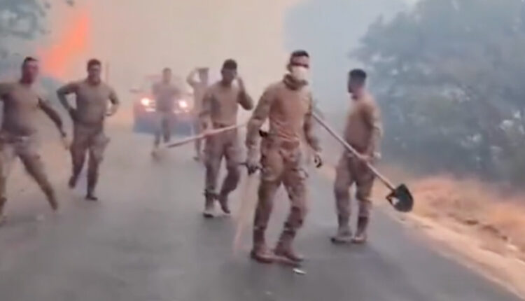 Die Momente, in denen Soldaten mit Spitzhacken und Schaufeln in der Hand im Brandgebiet arbeiteten, wurden mit der Kamera festgehalten.