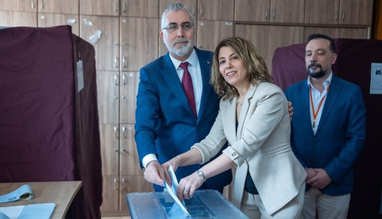 Der Minister für Arbeit und soziale Sicherheit Vedat Işıkhan, der mit seiner Frau Semire Işıkhan zur Pfadfinder-Oberschule kam, wo er am 31. März bei den Kommunalwahlen wählen wird, begrüßte die Bürger und Wahlurnenbeamten und unterhielt sich eine Weile.