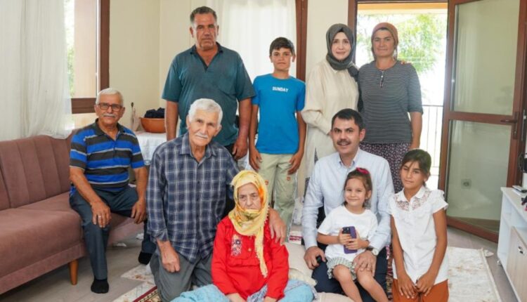 Murat Kurum teilte den Besuch auf seinem Social-Media-Account: „Wir haben Onkel İbrahim vor zwei Jahren während der Katastrophe in Manavgat kennengelernt. Er blieb mit seiner gelähmten Frau mitten in den Flammen zurück. Gott sei Dank wurde er sicher gerettet und wir bauten und lieferten sein Haus in 15 Tagen. Wir hatten Onkel Ibrahim ein Versprechen gegeben, dass wir als Familie zu Besuch kamen. Vielen Dank und es lebe Onkel Ibrahim.Er teilte es mit seinen Worten.