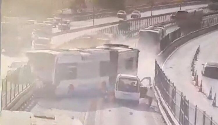 In neuen Landschaften; Es ist zu erkennen, dass der Metrobus in Richtung Sefaköy plötzlich von der Straße abkam und schnell mit dem Metrobus zusammenstieß, der von der gegenüberliegenden Seite kam.