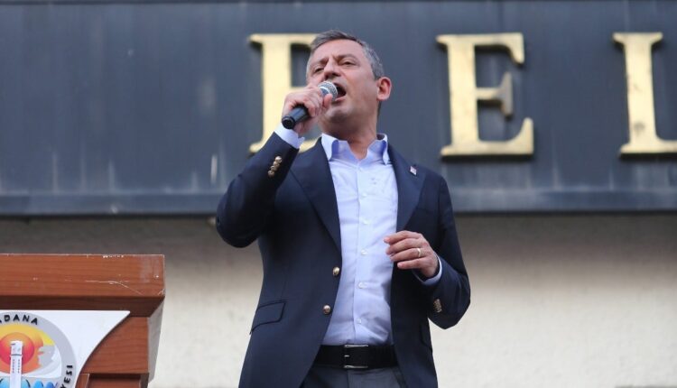 CHP-Vorsitzender Özgür Özel, der zu mehreren Besuchen nach Adana kam, traf sich mit Bürgern vor dem Steingebäude der Adana Metropolitan Municipality.