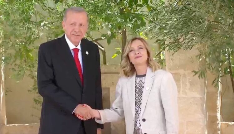Präsident Erdoğan wurde hier vom italienischen Premierminister Meloni begrüßt, der auf dem Hügel residiert.