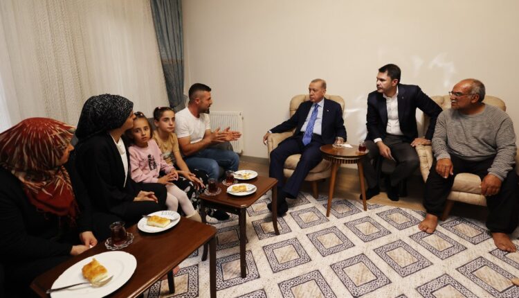 Nach der Schlüsselübergabezeremonie besuchte Präsident Erdoğan die Familie İpek, deren Haus beim Erdbeben zerstört wurde, in ihrem neuen Zuhause.