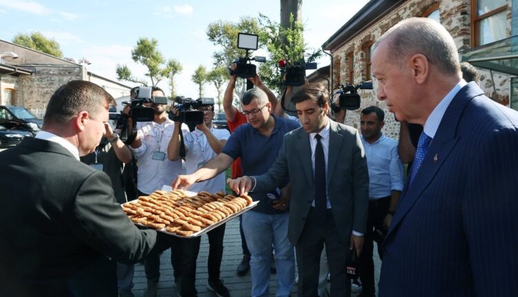 Präsident Erdoğan verteilte im Anschluss an die Sendung anlässlich von Mawlid Kandili Kandil-Bagels an die Journalisten.