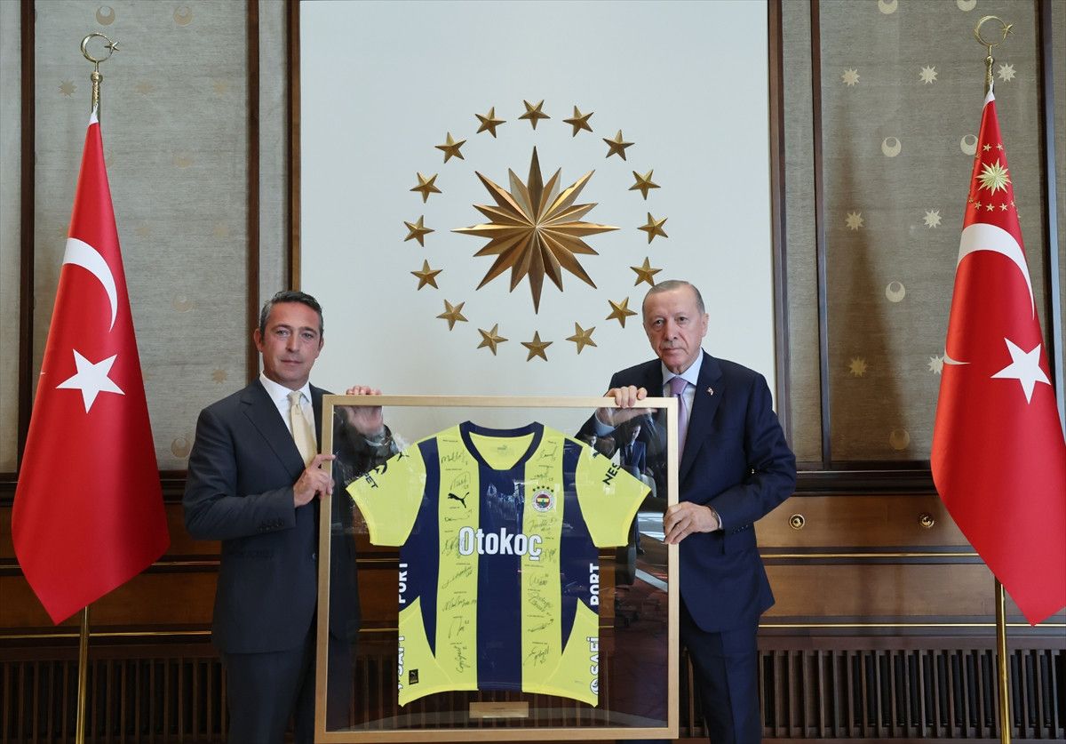 Beim Empfang überreichte der Präsident des gelb-dunkelblauen Klubs, Ali Koç, Präsident Erdoğan ein signiertes Trikot.
