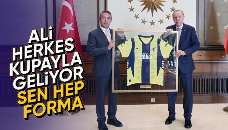 Beim Empfang überreichte der Präsident des gelb-dunkelblauen Klubs, Ali Koç, Präsident Erdoğan ein signiertes Trikot.