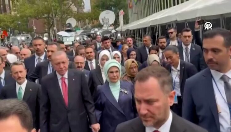 Erdoğan, seine Frau Emine Erdoğan und ihr Gefolge gingen zum UN-Gebäude gegenüber der Türkevi.