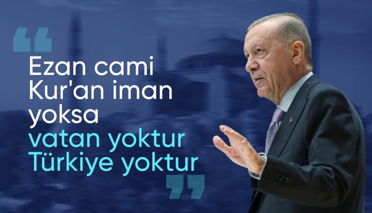 Erdogan, „Wir existieren, damit unsere Heldenarmee nicht ohne Helden zurückbleibt. Wenn man den Islam, Adhans, Moscheen und den Koran aus diesen Ländern wegnimmt, wird nichts mehr übrig bleiben. Wenn es keinen Adhan gibt, wenn es keinen Glauben gibt, dann.“ ist kein Heimatland, keine Nation, keine Türkei.“Er benutzte die Ausdrücke.
