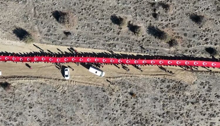 Bei dem Marsch, der vom Gökkuyu-Plateau aus begann, brachten Schüler der Polizeiberufsschule Farbe in die Veranstaltung, indem sie eine 100 Meter lange türkische Flagge und ein Atatürk-Plakat entfalteten.