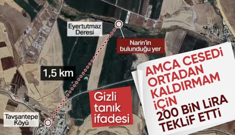 Nach Angaben von Halit Turan aus Sabah; Während seiner Vernehmung sagte der inhaftierte Verdächtige, dass Narins Onkel 200.000 Lira für die Beerdigung der Leiche angeboten habe.