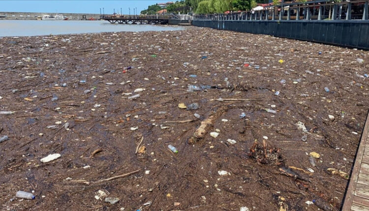 In Zonguldak, das inmitten der von Überschwemmungen betroffenen Provinzen liegt, wurden die Abfälle ins Meer geschleppt, nachdem der Regenguss zu einer Verschmutzung des Hafengebiets geführt hatte.