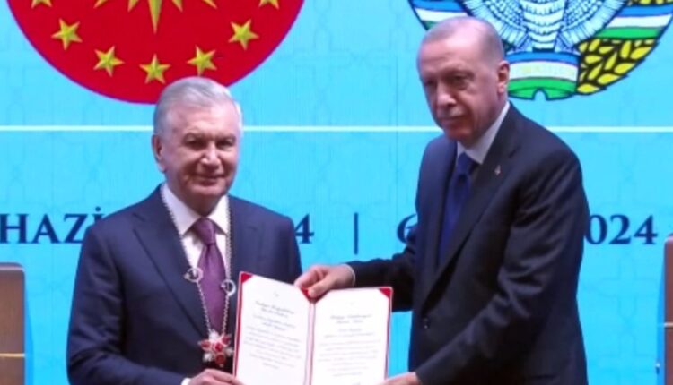 Staatsmedaille von Präsident Erdoğan an seinen usbekischen Amtskollegen
