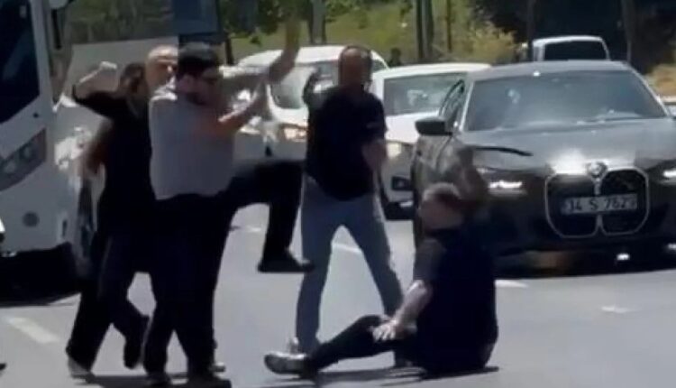 Straßenschlägerei mit Schlagstöcken und Tritten zwischen Autofahrern in Istanbul