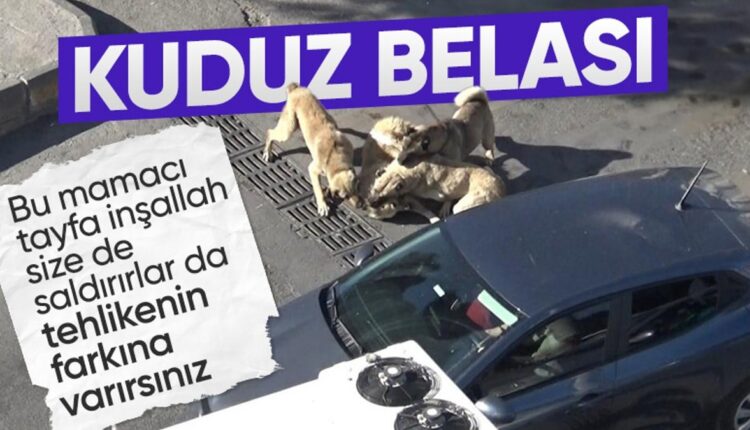 Hunde, die im Rudel auf dem Atatürk-Boulevard liefen, der im Stadtzentrum häufig von Bürgern genutzt wird, griffen sich plötzlich gegenseitig an.