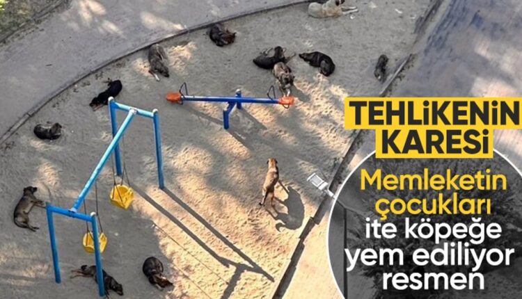 Die Momente, in denen Raubhunde als Bande gemeinsam auf einem Kinderspielplatz rasteten, wurden von Bürgern festgehalten.