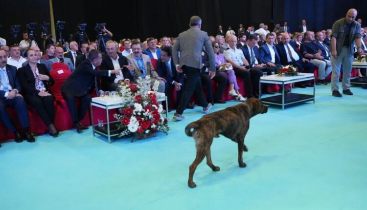 Während der Eröffnungsfeier der Antalya Regional Works Fair (YÖREX) betrat plötzlich ein streunender Hund die Halle, während er mit einer Drohne schoss, um ein Foto im Messegelände aufzunehmen.