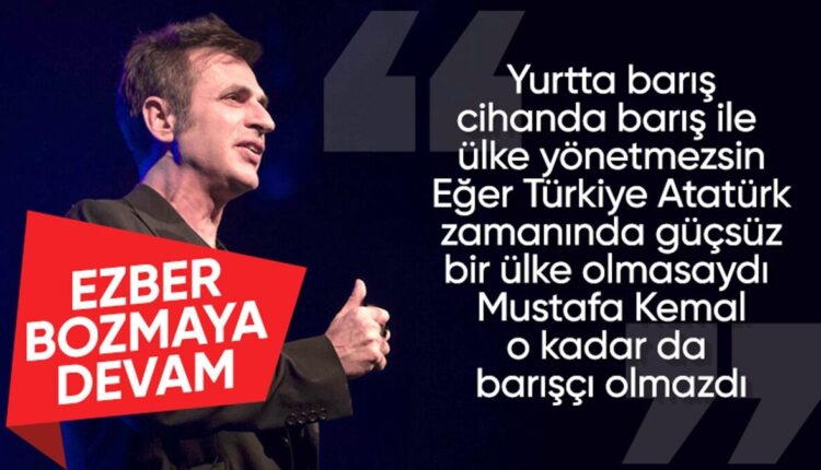 Berühmter Musiker, Atatürks berühmtes Sprichwort „Frieden zu Hause, Frieden in der Welt“sich auf das Wort beziehen, „Man kann ein Land nicht mit Frieden im eigenen Land und Frieden in der Welt regieren.“. „Wenn die Türkei zu Atatürks Zeiten wirtschaftlich, politisch und militärisch nicht so schwach gewesen wäre, gehe ich davon aus, dass Atatürk, der ein ehrgeiziger Mensch war, nicht gesagt hätte: ‚Frieden zu Hause, Frieden in der Welt‘.“sagte er.