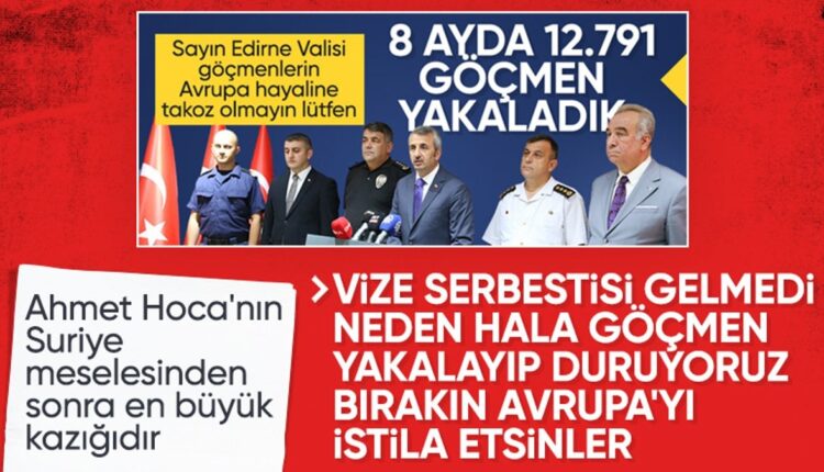 Schließlich sagte der Gouverneur von Edirne, Yunus Sezer, dass in den 8 Monaten des Jahres 3024 12.791 unsystematische Einwanderer in Edirne gefangen wurden.