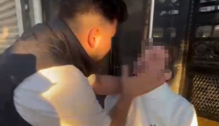 Verprügelt gegen den Verdächtigen, der heimlich ein Foto von einem Mädchen machte, das in einem Café in Istanbul saß