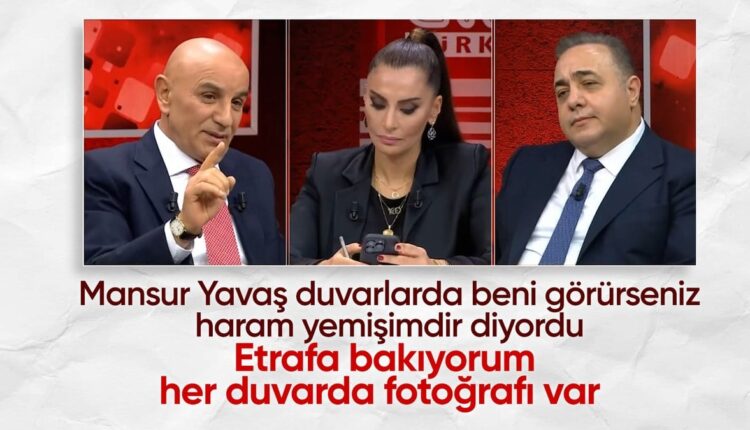 Als Turgut Altınok an der Live-Übertragung von CNN Türk teilnahm, ging er auf die Werbeplakate ein, die Yavaş überall in Ankara aufgehängt hatte.