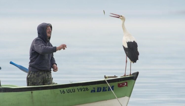 Yaren Stork landete zum 13. Mal auf einem Fischerboot in Bursa
