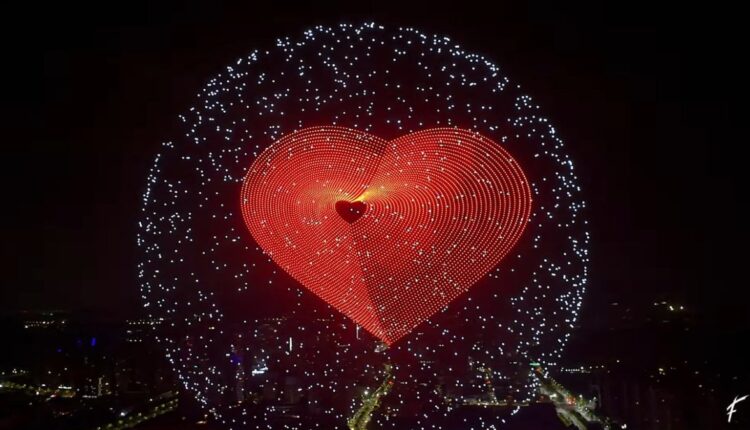 Bei dieser einzigartigen Veranstaltung Tausende von Drohnen bewegen sich perfekt synchron und erzeugen komplexe Muster am Himmel. erstellte bewegte Bilder und sogar dreidimensionale Objekte.