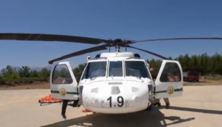 Der T70-Hubschrauber ist im Kampf gegen Waldbrände in Antalya Kemer im Einsatz.