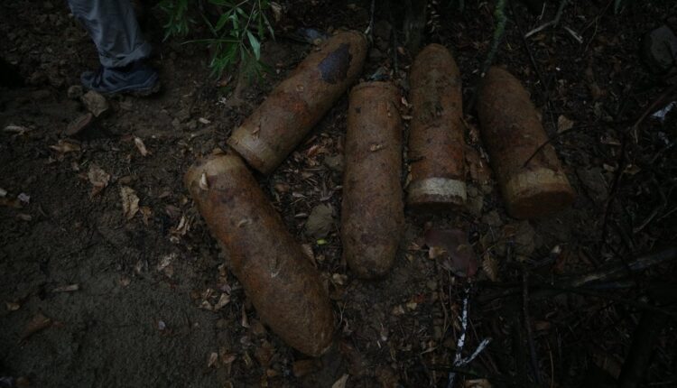 Bei den Arbeiten im Bereich der Artilleriegeschosse wurden 18 150-Millimeter-Artilleriegeschosse entdeckt, von denen einige im Boden vergraben waren.
