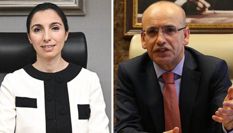 Şimşek wird von Hafize Gaye Erkan, dem Vorsitzenden der Zentralbank der Republik Türkei (CBRT), begleitet.